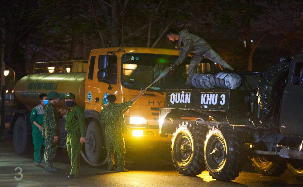 Trong thời điểm dịch COVID-19 diễn biến phức tạp, có nguy cơ bùng phát, các chiến sỹ Quân khu 3 đã cùng các ban, ngành chuyên môn tổ chức chiến dịch phun khử trùng đường, phố các quận huyện của thành phố Hải Phòng.