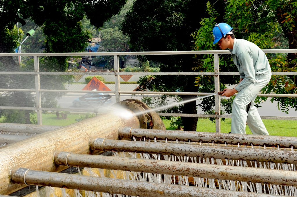Ảnh triển lãm cuộc thi ảnh báo chí “Nước cho cuộc sống và sự phồn thịnh”. Tác phẩm: “ Vệ sinh công nghiệp giàn mưa ” – Tác giả: Trần Hiền Anh