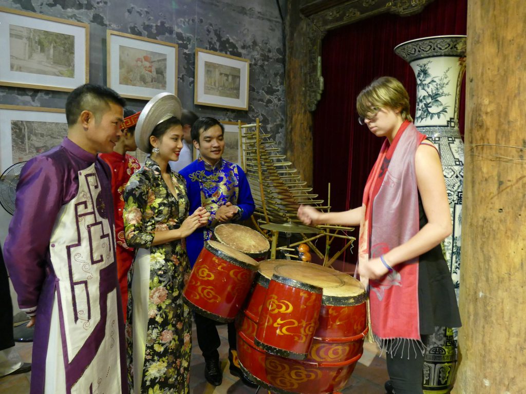Khách quốc tế chụp ảnh lưu niệm với các NS CLB Ca Trù Hà Nội