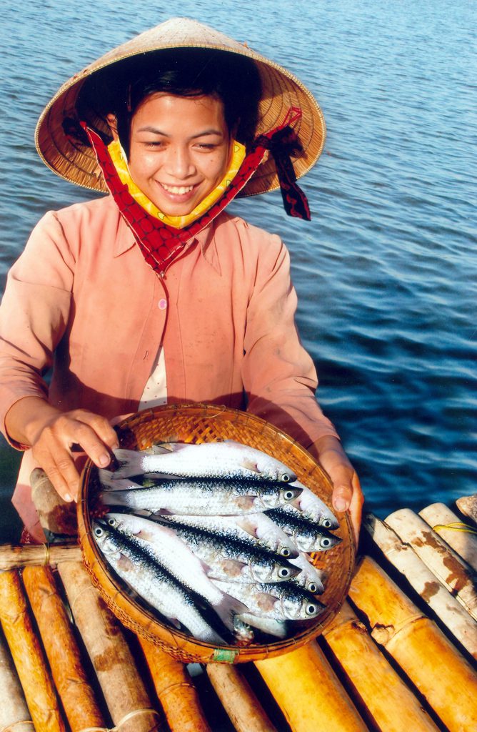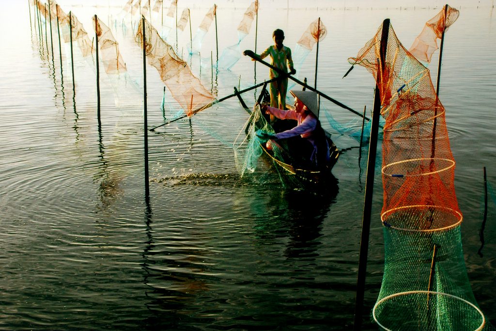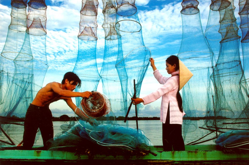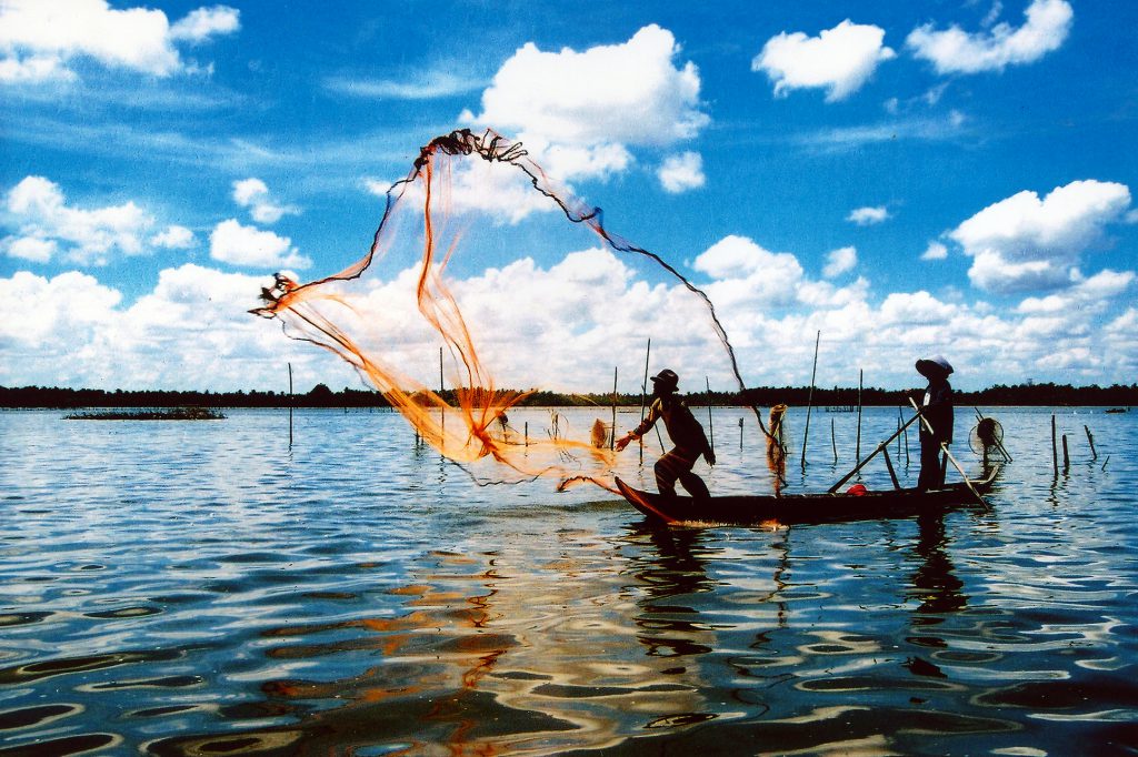 Dùng chài để bắt các loại tôm cá.