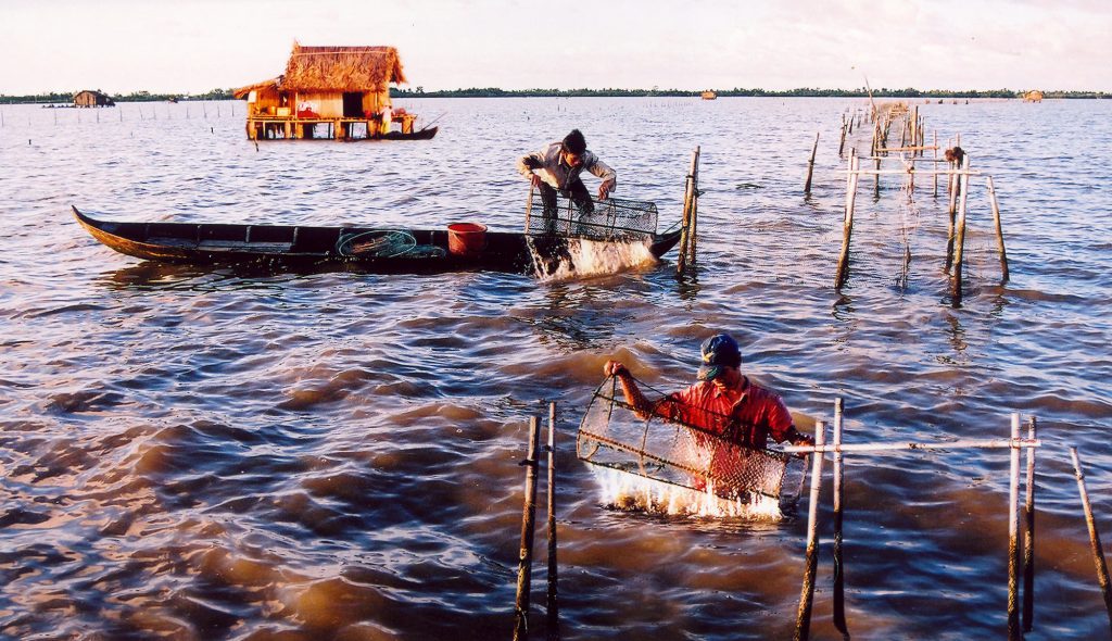 Dùng đăng ví cá. Đây là hình thức phải dùng sức của nhiều người nhưng hiệu quả rất cao, mỗi lần có thể thu hoạch vài chục đến hàng trăm kg cá các loại.