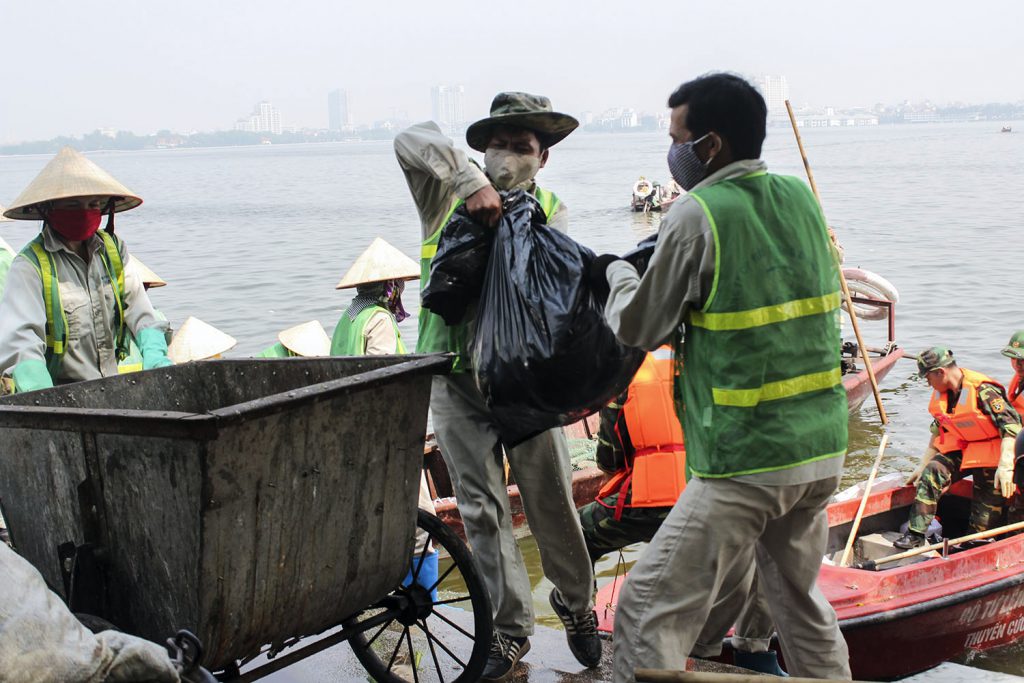 Các ngành chức năng thường xuyên làm công tác vệ sinh, bảo vệ môi trường trên mặt nước Hồ Tây