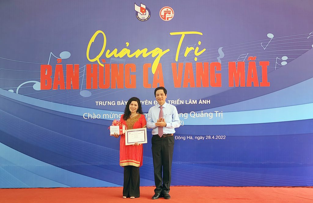 Đồng chí Hoàng Nam – Phó Chủ tịch UBND tỉnh Quảng Trị trao Giải Nhất cho tác giả Đường Hồng Mai