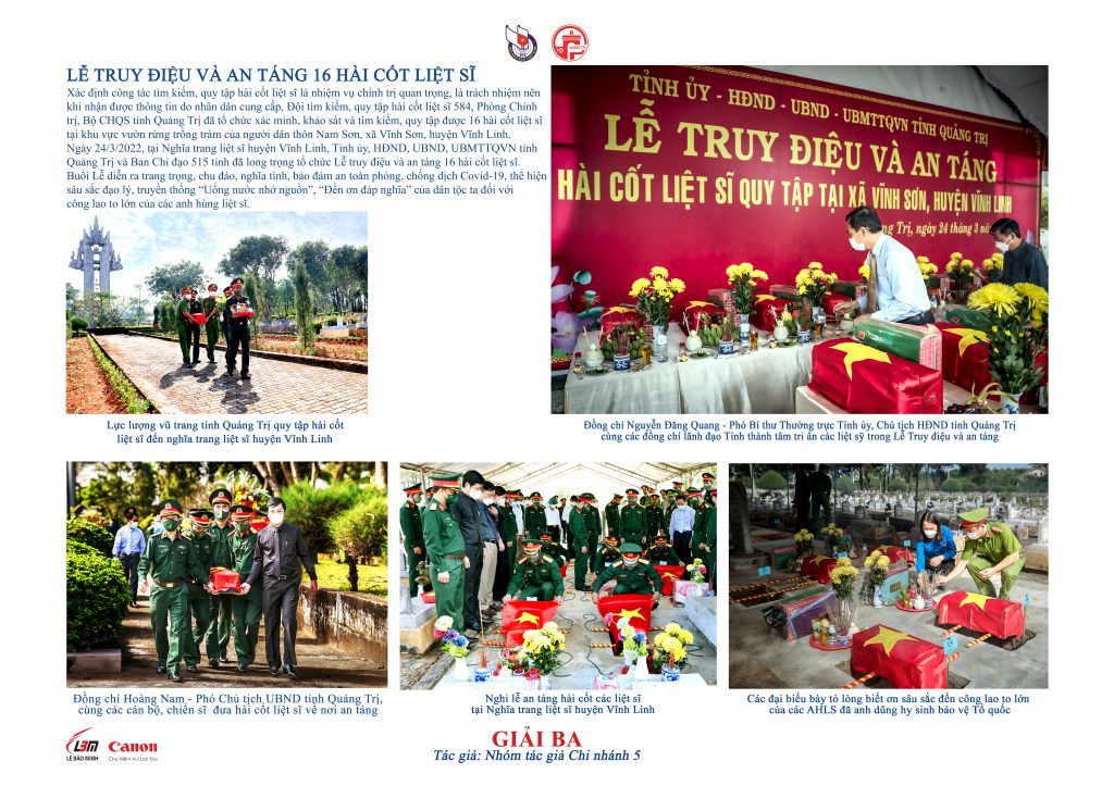 Tác phẩm “Lễ truy điệu và an táng 16 hài cốt liệt sĩ” đạt Giải Ba – Tác giả: Nhóm tác giả Chi nhánh 5