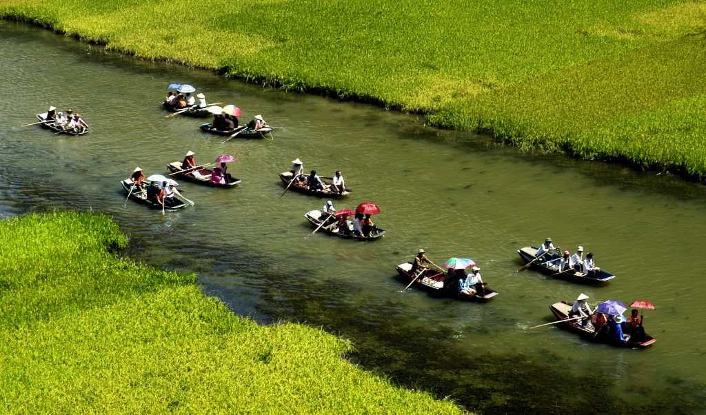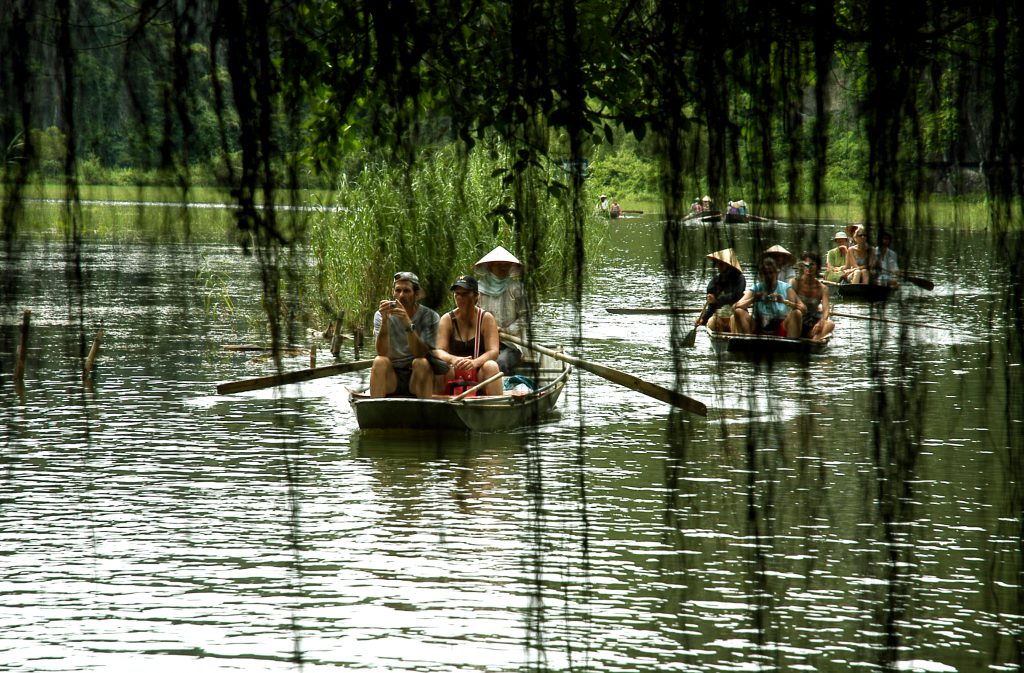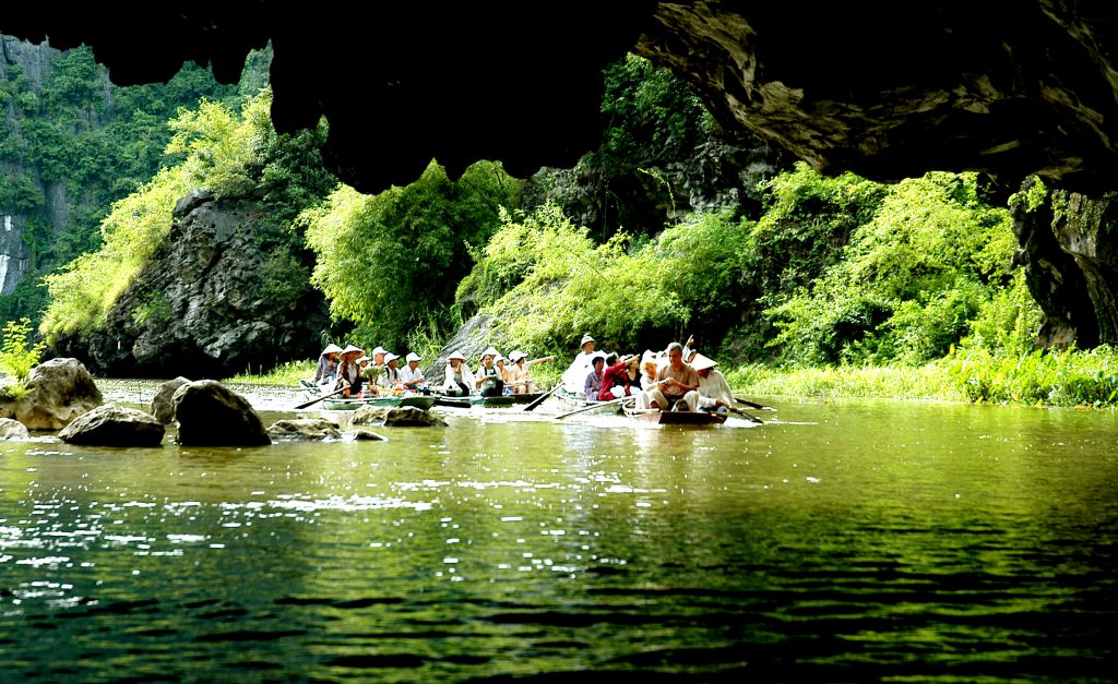 Chúng tôi có dịp đặt chân đến nơi đây, do năm 2020 có ảnh hưởng bởi dịch Covid -19 nên khá vắng khách. Tuy nhiên, những người đang làm việc tại khu du lịch rất mến khách, họ ân cần chào đón, tạo nên sự gần gũi, cởi mở rất hài hòa khiến chúng tôi cảm nhận rõ những phút thư thái của con người khi hòa mình với thiên nhiên, cảnh sắc. Trước khi đi tham quan trên sông Ngô Đồng, Chị Hàng – một người phụ nữ bán vé tranh thủ giới thiệu cho chúng tồi về những vẻ đẹp của tạo hóa mang lại cho vùng đất này. Nếu một lần được đặt chân đến đây, du khách đi thăm Tam Cốc từ bến đò đình Các, lướt nhẹ trên dòng sông Ngô Đồng trong không gian tĩnh lặng để hòa mình với thiên nhiên và ngắm nhìn cảnh đẹp tại nơi đây, xuống thuyền với niềm hân hoan chào đón của người chèo thuyền, cô Lê Thị Thao niềm nở cho biết: Đã hơn 30 năm gắn bó với nghề chèo thuyền đưa khách du lịch trên sông. Các chủ đò ở đây chủ yếu là người dân địa phương tại xã Ninh Hải, huyện Hoa Lư, họ sinh kế chủ yếu bằng nghề chèo đò tại khu du lịch Tam Cốc – Bích Động… Trong tiếng khua nhè nhẹ của mái chèo rẽ nước, du khách như được đắm mình với những dãy núi trùng điệp, những cánh đồng trải dài hai bên bờ sông Ngô Đồng thơ mộng. Quả thật cảnh đẹp sơn thủy nơi đây được ví như Vịnh Hạ Long trên cạn. Dọc đường là núi Văn (núi có hình dáng như mũ quan Văn) và phía tay phải là khu vực đền Thái Vi ẩn hiện sau những ngọn núi và tán cây. Khi vào trong hang, cảm giác mát mẻ và không khỏi ngỡ ngàng trước những nhũ đá rủ xuống với rất nhiều hình thù hấp dẫn đó chính là Hang Cả. Đây là hang lớn nhất cũng là hang đẹp nhất của Tam Cốc. Thuyền tiếp tục đưa chúng tôi đến hang Hai, hang ngắn và hẹp hơn hang Cả. Trên trần hang có nhiều nhũ đá, có chỗ tạo hình như mây bay rất đẹp, cũng có chỗ trong ánh sáng mờ ảo khi ra gần tới cửa hang hình thù như những chú bé mục đồng đang chăn trâu trên cánh đồng nhũ đá. Cô lái đò vừa nhịp nhàng chèo thuyền vừa chia sẻ:“Khu du lịch này được bảo vệ rất cẩn thận, chỉ cần hành động bẻ một cành cây ở đây du khách cũng có thể bị phạt đến vài trăm nghìn. Ban quản lý tại đây làm rất nghiêm nên mới giữ được những nét nguyên sơ như vậy”. Mặc dù ở đây vắng khách nhưng không diễn ra cảnh tranh giành như một số điểm tham quan du lịch khác vì cách quản lý của ban quản lý về thuyền phục vụ khách, cô Thao cũng chia sẻ lý do rất đặc biệt: “Ở đây mỗi một thuyền sẽ được ban quản lý giao cho một số thứ tự và mọi người sẽ theo số thứ tự đó để phục vụ khách, chúng tôi được nhận tiền của mỗi lần đi du khách phải trả là 150.000 đồng. Chúng tôi chèo thuyền ở đây và luôn yên tâm vì đến lượt mình thì sẽ được thông báo nên không xảy ra việc tranh giành với nhau. Mùa lúa chín, du khách sẽ được chiêm ngưỡng cánh đồng lúa, thảm thực vật tuyệt đẹp nơi đây. Dòng sông lúc đó không còn rộng như bây giờ mà được thu hẹp nhường lại cho hai bên là cánh đồng lúa. Lúc này nếu được quan sát từ trên cao du khách sẽ thấy dòng như một dải lụa”.