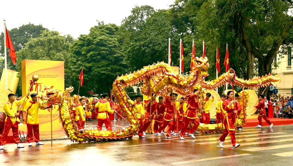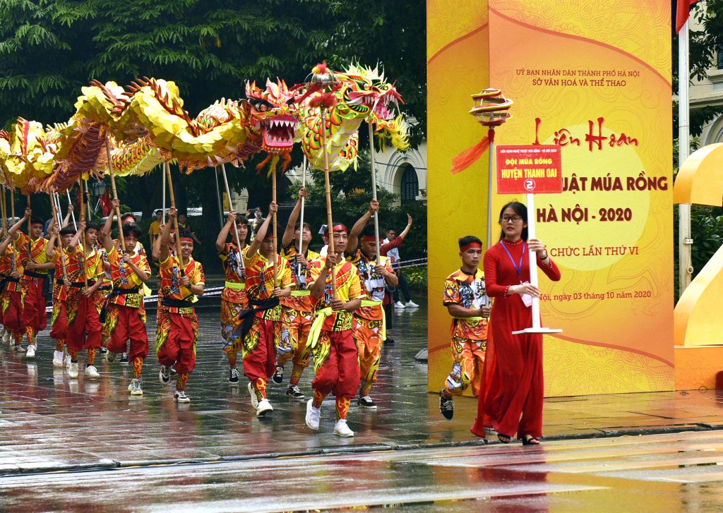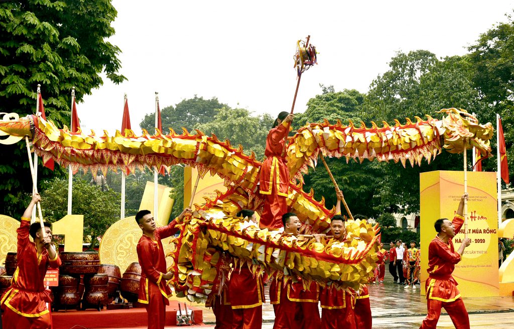 Thành phố vì hòa bình với bề dày 1010 năm lịch sử đang trên con đường hội nhập và phát triển, trải qua thăng trầm của thời gian, “Thăng Long” thực sự là tên gọi mang theo niềm tự hào không chỉ của người dân Thủ đô mà còn là của cả dân tộc Việt Nam. Với tinh thần lưu giữ truyền thống đáng tự hào đó của dân tộc, đồng thời là nét đẹp văn hóa đặc sắc, trong những năm gần đây, chương trình Liên hoan nghệ thuật Múa Rồng – Hà Nội thực sự đã trở thành dịp để các nghệ nhân, diễn viên của các đội Múa Rồng truyền thống đến từ nhiều địa phương trên địa bàn thành phố gặp gỡ, giao lưu, trao đổi kinh nghiệm biểu diễn. Vừa qua, vào ngày 03/10/2020, nhằm chào mừng Đại hội Đảng bộ Thành phố lần thứ XVII, kỷ niệm 66 năm ngày Giải phóng Thủ đô (10/10/1954 – 10/10/2020) và hướng tới 1010 năm Thăng Long – Hà Nội, Sở Văn hoá và Thể thao Hà Nội tổ chức đã tổ chức Liên hoan Nghệ thuật múa rồng Hà Nội năm 2020 tại vườn hoa tượng đài Lý Thái Tổ. Đây là lần thứ 6, chương trình Liên hoan múa rồng được Hà Nội tổ chức. Tại buổi Liên hoan, thông qua các màn múa Rồng, múa Lân, các đoàn biểu diễn đã tái hiện các sự kiện lịch sử truyền thống vẻ vang của dân tộc, ca ngợi đất nước – con người, ca ngợi Thủ đô văn hiến – Thành phố vì hòa bình với bề dày 1010 năm lịch sử, trên con đường hội nhập và phát triển. Đây là một hoạt động văn hóa nghệ thuật có ý nghĩa xã hội sâu sắc, tạo không khí vui tươi phấn khởi trong đời sống văn hóa, tinh thần của người dân Thủ đô, góp phần kích cầu phát triển kinh tế – xã hội và du lịch, phục vụ nhân dân trên địa bàn thành phố.