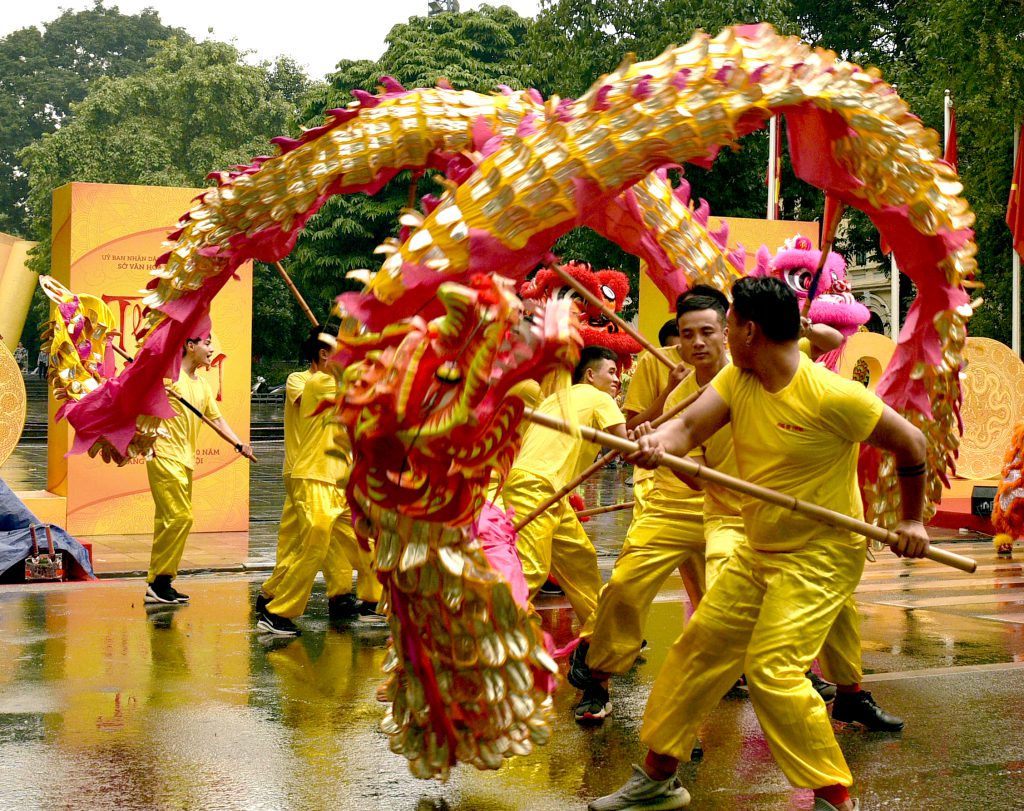 Khi xưa, vua Lý Thái Tổ dời đô từ Hoa Lư về thành Đại La, Nhà vua đã đổi tên thành Đại La thành Thăng Long – có nghĩa là Rồng bay – tượng trưng cho khát vọng xây dựng kinh đô, đất nước hùng cường. Hình tượng Rồng thời Lý tượng trưng cho sự linh thiêng, oai hùng, khí thể mạnh mẽ vươn lên đã trở thành biểu tượng của Thủ đô Hà Nội ngàn năm văn hiến – nơi tinh hoa dân tộc hội tụ, lan tỏa trên khắp mọi miền đất nước, phát triển thành biểu tượng của nền văn hiến Việt Nam. Và đất kinh kỳ cũng là một trong những cái nôi phát triển loại hình múa rồng ở nước ta. Tại Hà Nội, hiện nay nghệ thuật múa rồng vẫn được lưu giữ và phổ biến ở nhiều địa phương như làng Triều Khúc, Thanh Trì, Ngọc Hồi, Vĩnh Thịnh, Vĩnh Ninh, Đại Áng, Vĩnh Quỳnh, Từ Liêm,… Nhiều làng vào các dịp hội hè, lễ Tết còn tổ chức thi múa rồng với các điệu rồng chầu, rồng lượn, rồng bay, rồng uốn khúc… Ngày nay, ở nước ta, theo các nhà nghiên cứu, có ít nhất hơn 30 điệu múa rồng chính thức, xuất hiện ở nhiều địa phương, trong đó tiêu biểu như các điệu: Bàn long, Thủy ba, Phong đằng, Phong chuyển, Phi long, Chồng tháp, Dao bãi, Thanh long xuất trận, Long quá vũ môn, Hoàng long chúc phúc, Kim long xuất động, Hồng long đảo thủy, Uyên ương dạ quang long, Dạ quang long (con Rồng cháu Tiên)… Những màn múa đẹp mắt, hòa quyện nét đẹp tâm linh và võ thuật cổ truyền tạo cho không khí cho lễ hội truyền thống thêm vui tươi, gửi gắm ước mong cho mùa màng bội thu, mưa thuận gió hoà, nhân khang vật thịnh của cư dân nông nghiệp đất Việt.