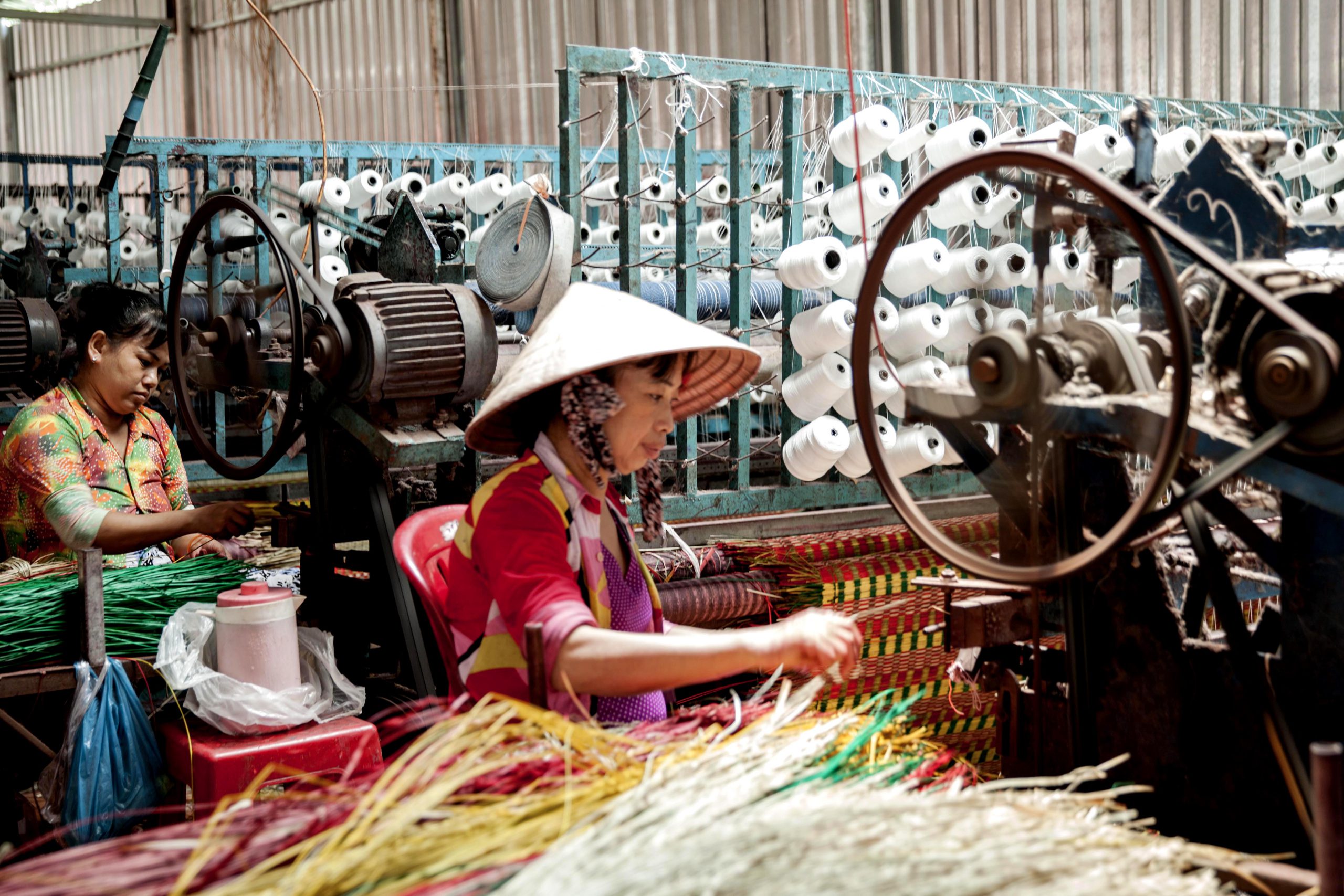 Để đáp ứng về mẫu mã và chất lượng của thị trường nên máy dệt công nghiệp được đầu tư thay thế cho dệt thủ công
