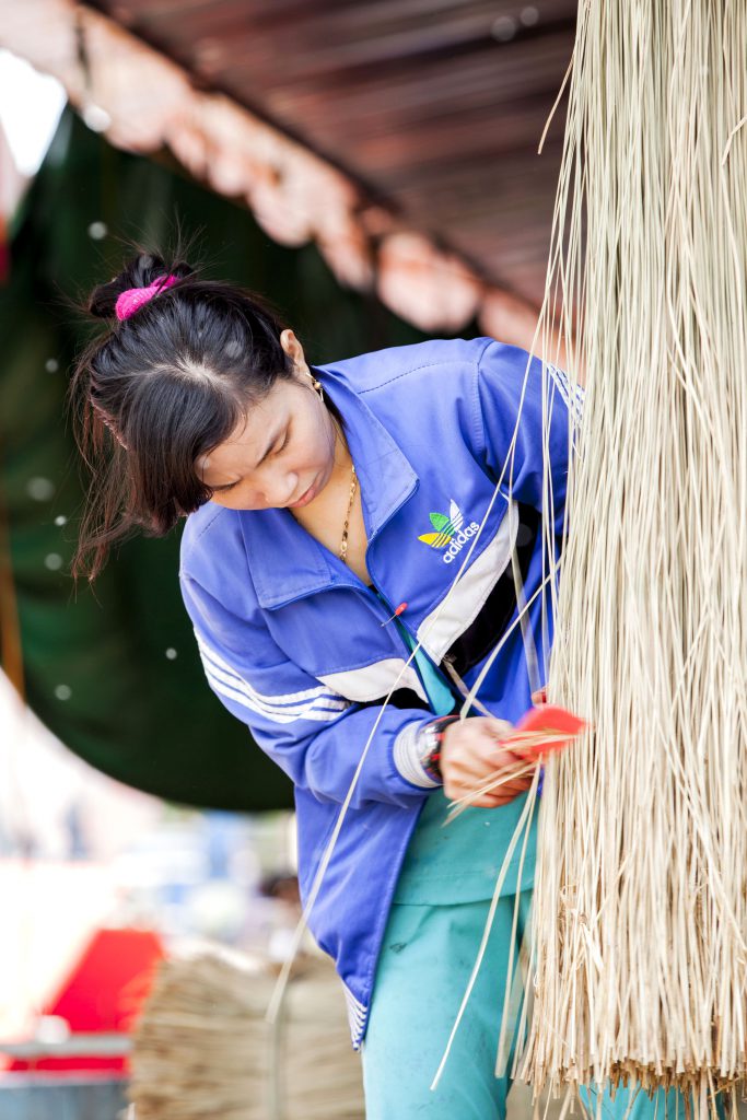 Chải cói là công đoạn quan trọng, để cho chiếc chiếu được tinh tế sau khi dệt