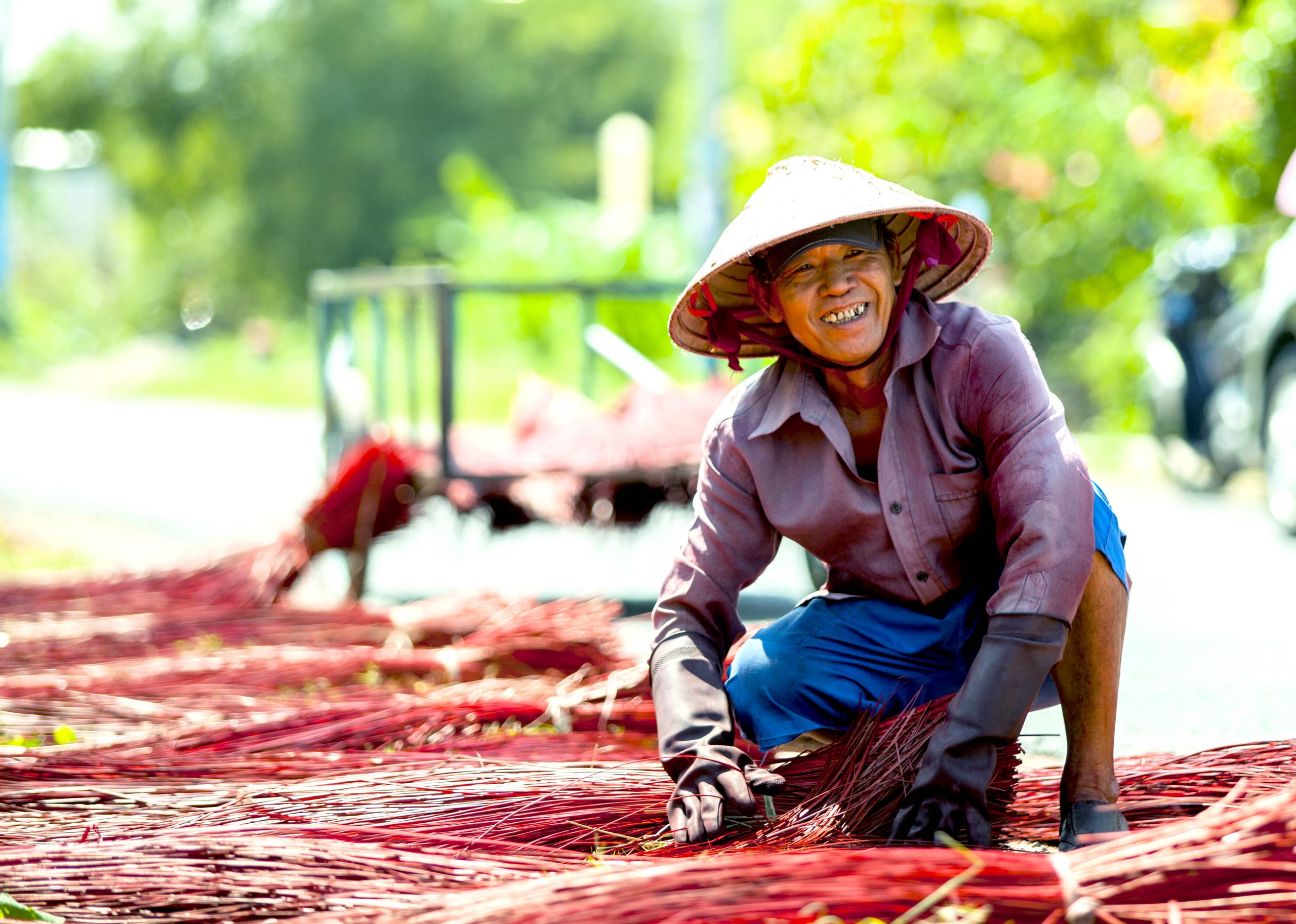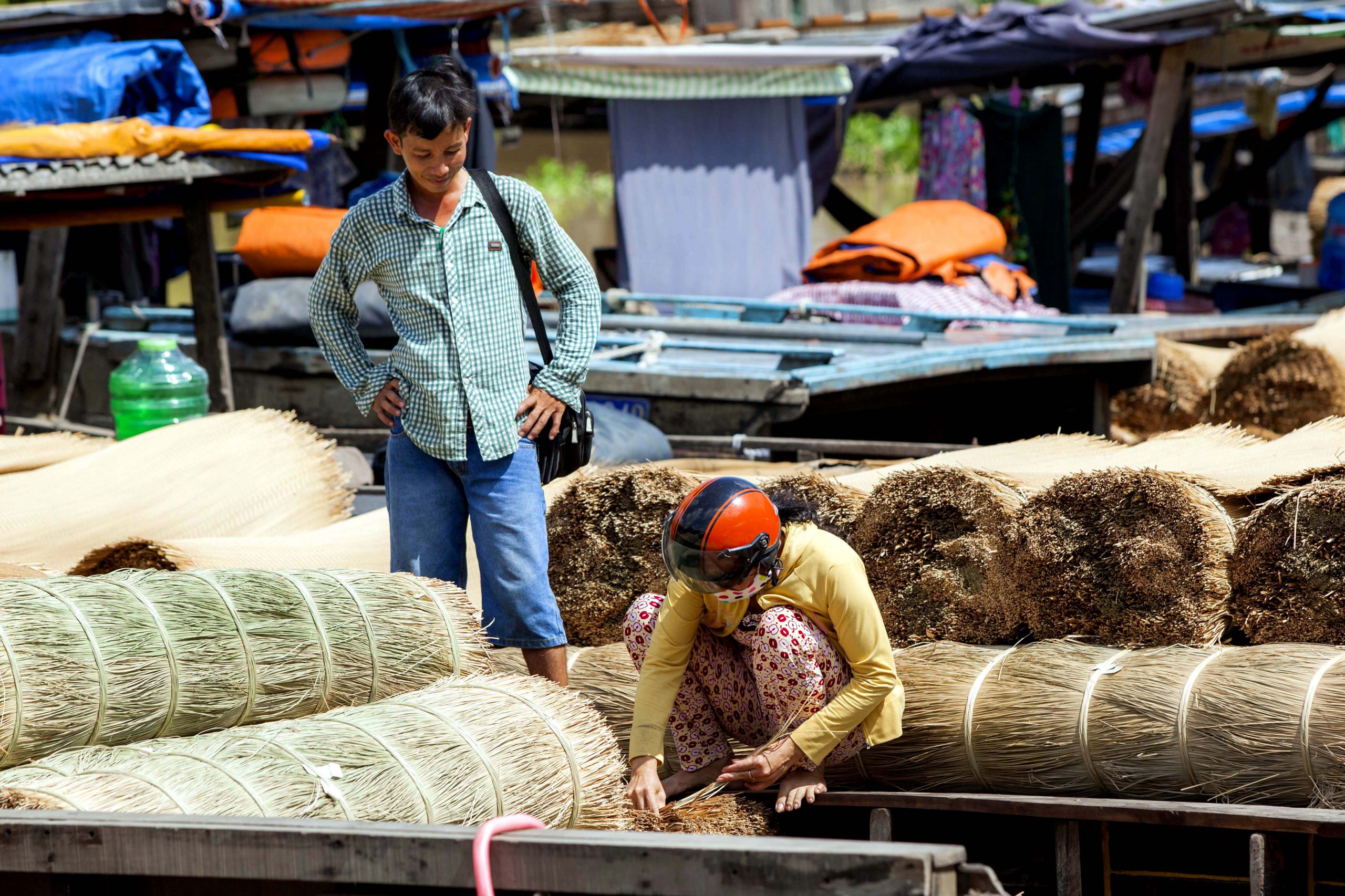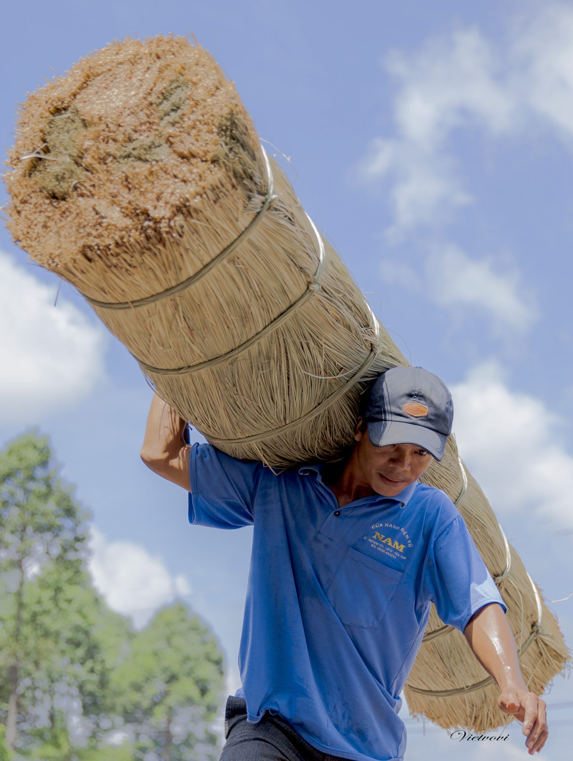 Anh Qách Văn Danh ở Lấp Vò, người có thâm niên 10 năm vác cói (Lác)