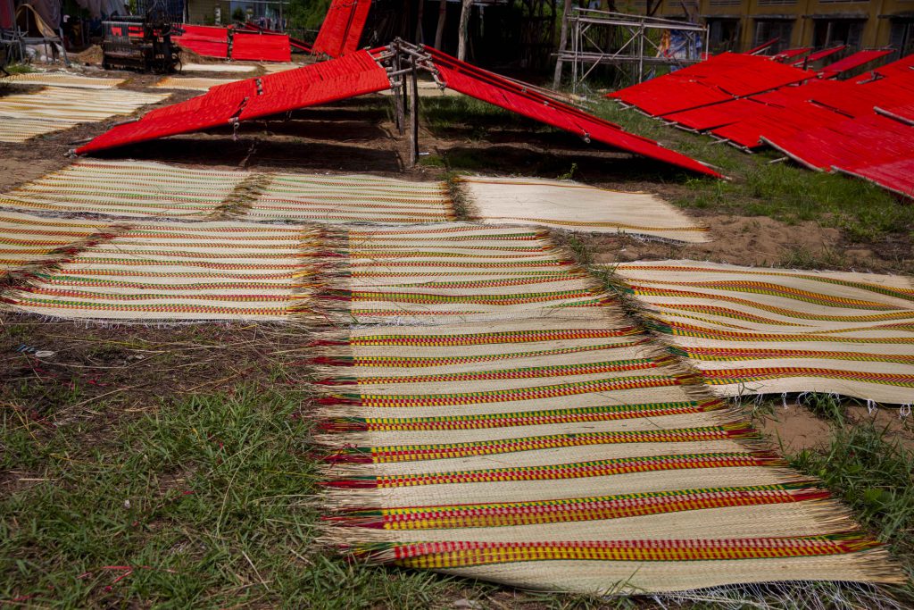 Trải bao thăng trầm, vất vả, người dân Định Yên, huyện Lấp Vò, tỉnh Đồng Tháp vẫn gắn bó, đam mê với nghề dệt chiếu truyền thống. Để có được những tấm chiếu sắc màu rực rỡ, người thợ dệt chiếu Định Yên phải cần đến nguồn nguyên liệu (lát, trân, cói…) dồi dào từ vùng miệt vườn Vĩnh Long, Trà Vinh. Từ chợ nguyên liệu trên các con đò đậu kín lòng kênh, người thợ dệt chiếu sẽ lựa những sợi lát trắng, đẹp, nhỏ và nhuyễn, đủ dài để đan được 2 lớp mà không phải nối cói. Bởi vậy nên chiếu Định Yên luôn được thị trường ưa chuộng.