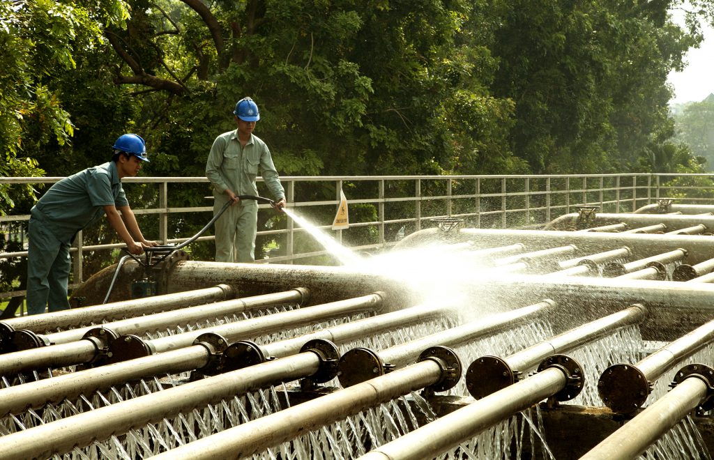 Công tác làm vệ sinh dàn mưa nhà máy nước được thực hiện thường xuyên để đảm bảo chất lượng nước sạch
