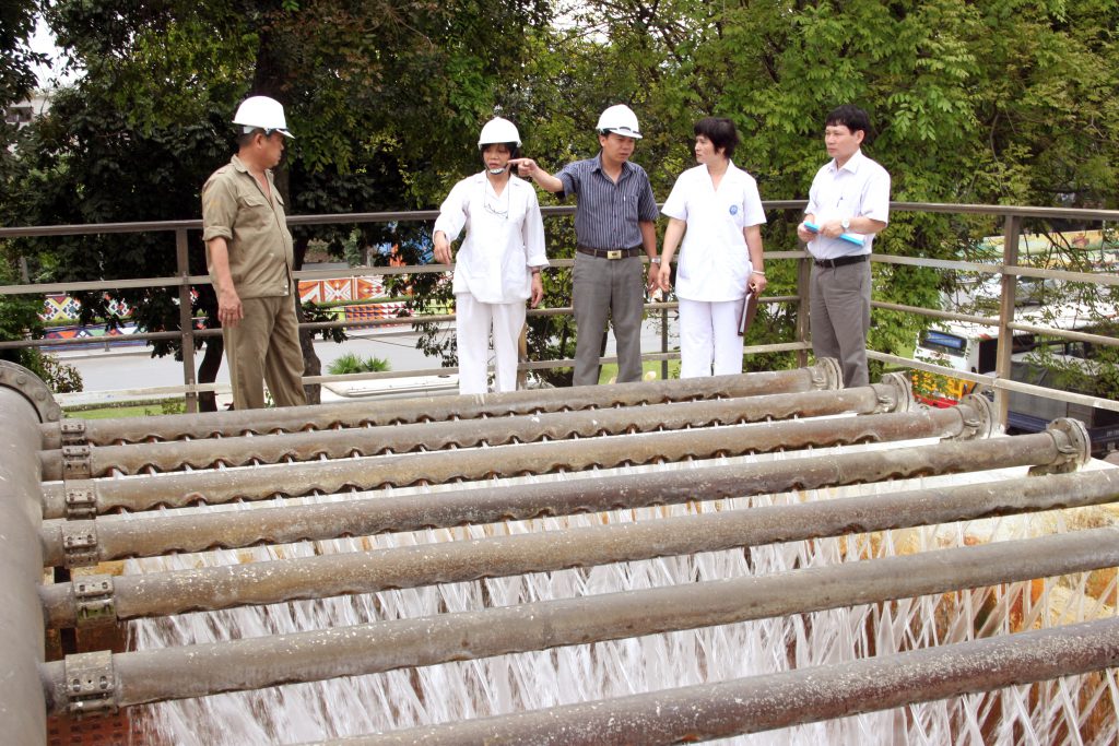 Đội ngũ chuyên môn của Công ty nước sạch Hà Nội kiểm tra mẫu nước tại bể chứa