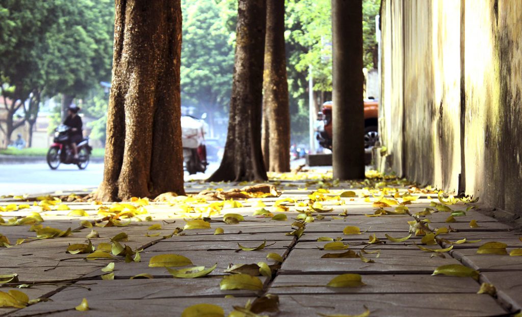 Lá vàng rơi trên góc phố đường Nguyễn Tri Phương