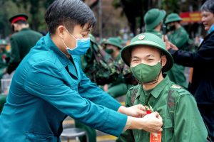 Ảnh Triển lãm Cuộc thi ảnh báo chí “Ấn tượng 2021”. Tác phẩm: “Lên đường nhập ngũ trong mùa COVID” – Tác giả: Đào Minh Xuyên