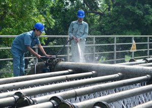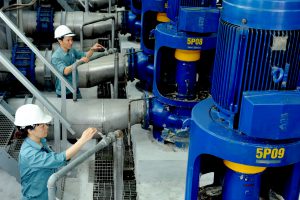 Ảnh triển lãm cuộc thi ảnh báo chí “Nước cho cuộc sống và sự phồn thịnh”. Tác phẩm: “Vận hành cấp nước vào mạng lưới nước sinh hoạt ở Thủ đô Hà Nội” – Tác giả: Vũ Thị Hoàng Oanh