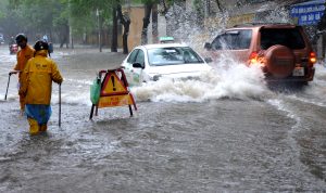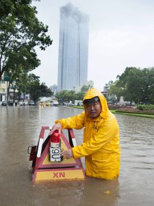 Ảnh triển lãm cuộc thi ảnh báo chí “Nước cho cuộc sống và sự phồn thịnh”. Tác phẩm: “ Công nhân thoát nước Hà Nội xử lý thoát nước trong cơ mưa ” – Tác giả: Nguyễn Đăng Khoa