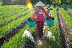 Ảnh triển lãm cuộc thi ảnh báo chí “Nước cho cuộc sống và sự phồn thịnh”. Tác phẩm: “ Tưới hành ” – Tác giả: Phạm Thị Thu