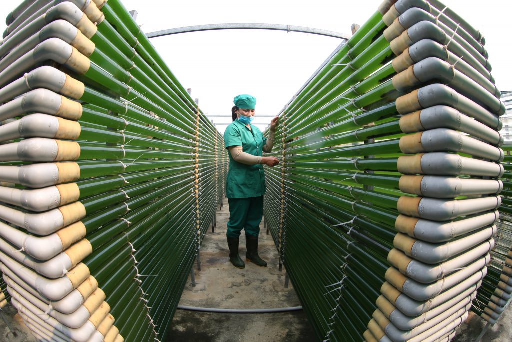 Kiểm tra sự phát triển của tảo xoắn tại dàn photobiorector