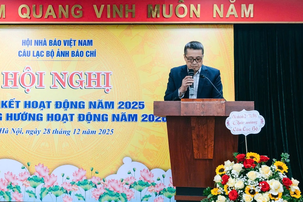 Sáng ngày 28/12/2025, Câu lạc bộ Ảnh báo chí – Hội Nhà báo Việt Nam (CLB) đã long trọng tổ chức Hội nghị tổng kết hoạt động năm 2025 và triển khai phương hướng hoạt động năm 2026. Hội nghị diễn ra tại Tòa nhà Hội Nhà báo Việt Nam trong không khí ấm cúng, trang nghiêm tạo sự phấn khởi cho đại biểu khách mời và hội viên CLB đến từ nhiều tỉnh, thành trên cả nước.