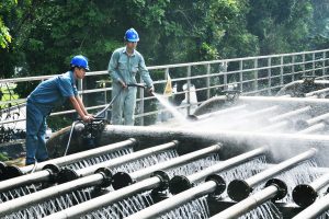 Ảnh triển lãm cuộc thi ảnh báo chí “Nước cho cuộc sống và sự phồn thịnh”. Tác phẩm: “Công nhân Công ty nước sạch Hà Nội thực hiện làm sạch giàn bơm nước trong quá trình sản xuất nước sạch” – Tác giả: Nguyễn Thị Minh Phượng