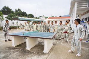 Ảnh treo Cuộc thi và triển lãm ảnh báo chí “Cuộc sống thường ngày” năm 2021. Tác phẩm Giờ nghỉ của phạm nhân Tác giả Hồ Đình Chiến