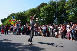 Ảnh treo Cuộc thi và triển lãm ảnh báo chí “Cuộc sống thường ngày” năm 2021. Tác phẩm Nghệ sĩ xiếc ngoại quốc trên phố đi bộ Hà Nội. Tác giả Trần Quốc Vĩnh