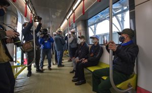 Ảnh treo Cuộc thi và triển lãm ảnh báo chí “Cuộc sống thường ngày” năm 2021. Tác phẩm Nhân dân tham quan đoàn tàu đầu tiên đoạn Nhổn – ga Hà Nội